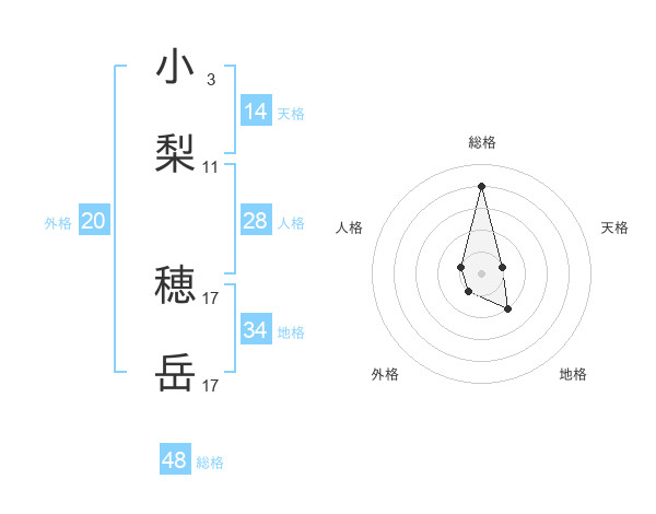小梨 穂岳さんの総格は48画の4点!