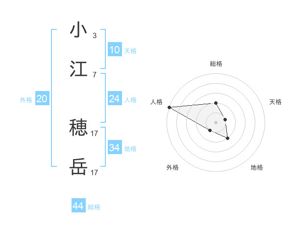 小江 穂岳さんを姓名の画数から五運を鑑定