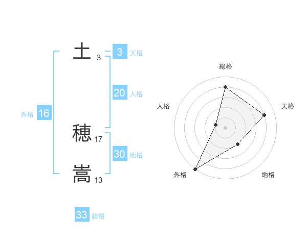 土 穂嵩さんを姓名の画数から五運を鑑定