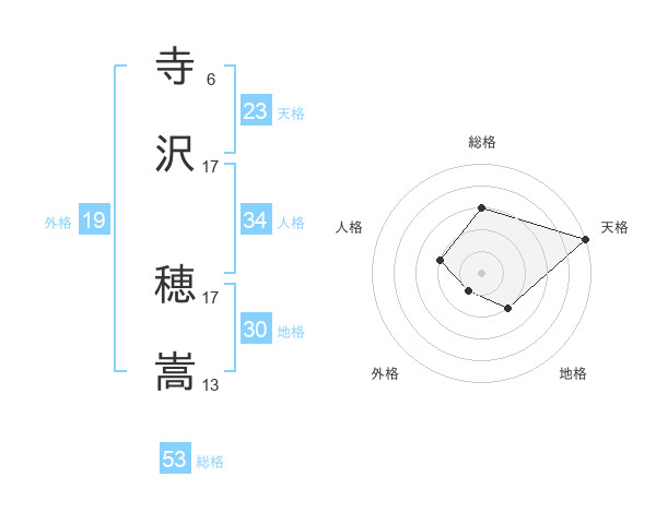 寺沢 穂嵩さんの天格は23画の5点!