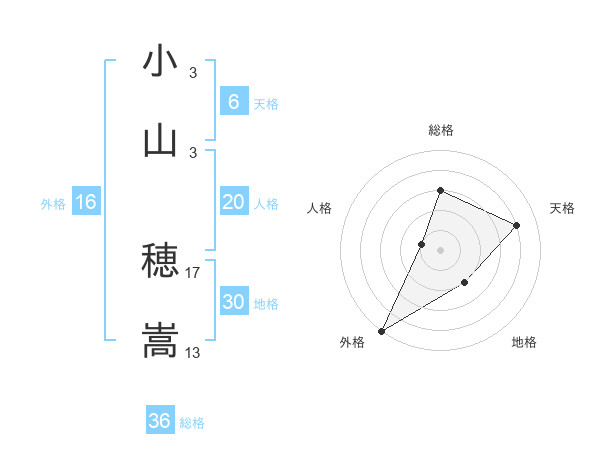 小山 穂嵩さんを姓名の画数から五運を鑑定