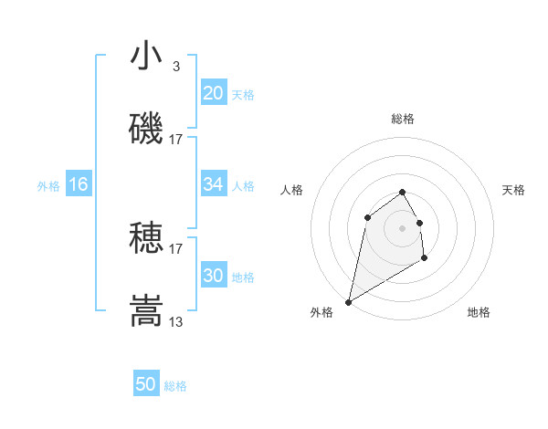 小磯 穂嵩さんの総格は50画の2点!