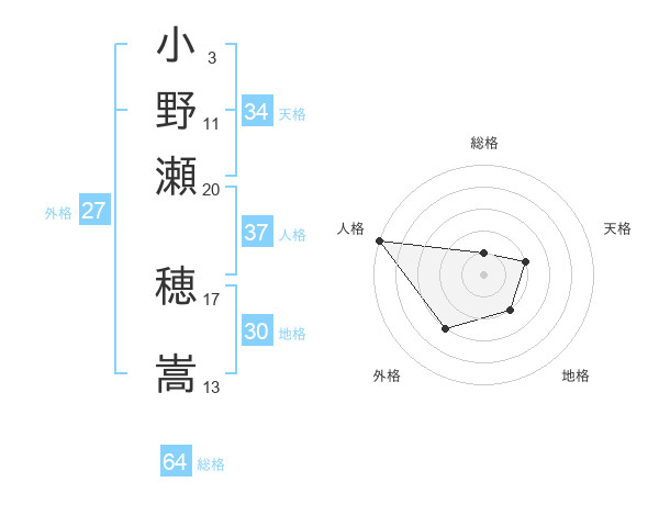 小野瀬 穂嵩さんを姓名の画数から五運を鑑定