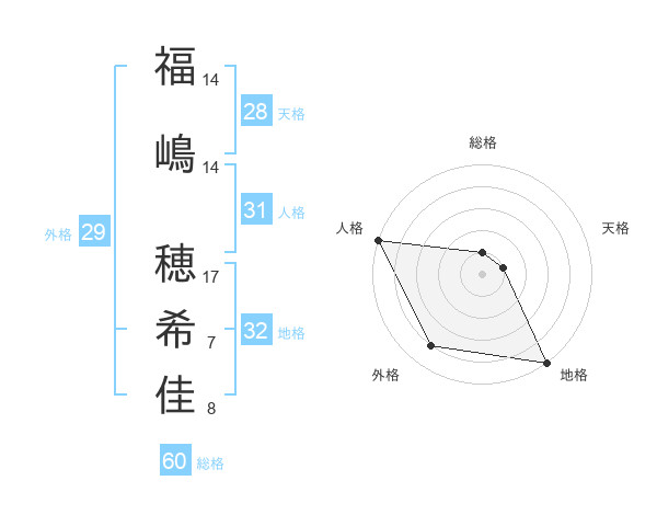福嶋 穂希佳さんの地格は32画の5点!