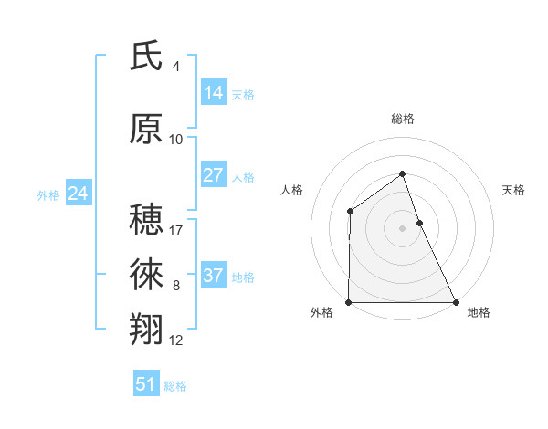氏原 穂徠翔さんを姓名の画数から五運を鑑定