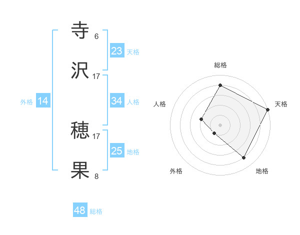 寺沢 穂果さんの総格は48画の4点!