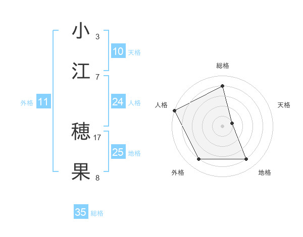 小江 穂果さんの総格は35画の4点!