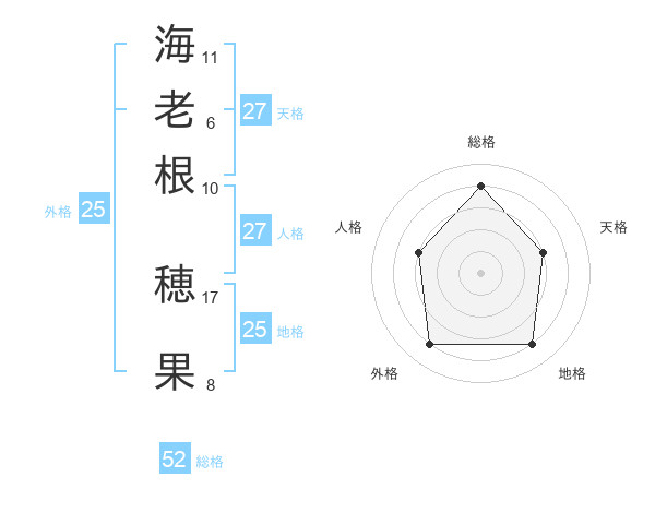 海老根 穂果さんの総格は52画の4点!