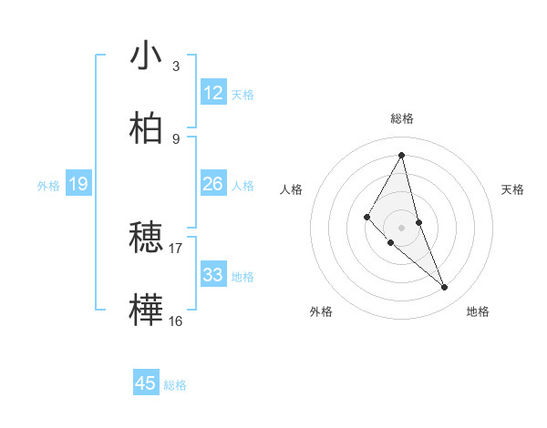 小柏 穂樺さんの総格は45画の4点!
