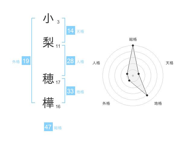 小梨 穂樺さんを姓名の画数から五運を鑑定