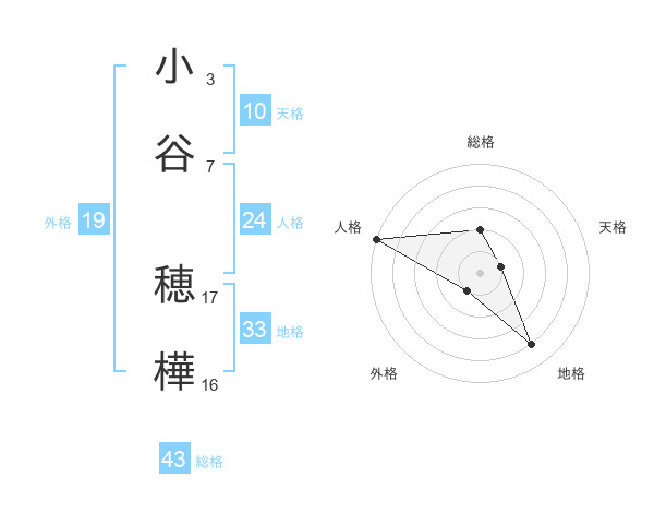 小谷 穂樺さんを姓名の画数から五運を鑑定