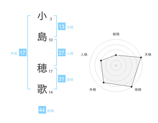 小島 穂歌さんを姓名の画数から五運を鑑定