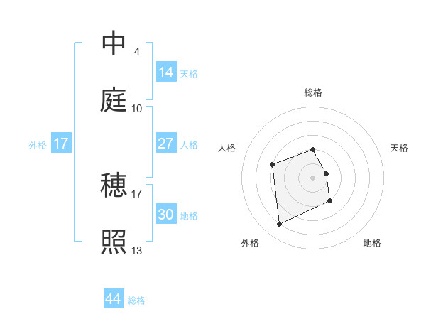中庭 穂照さんの外格は17画の4点!
