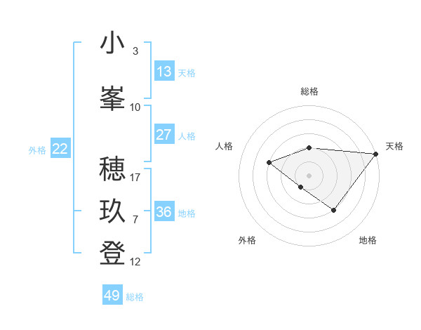 小峯 穂玖登さんを姓名の画数から五運を鑑定