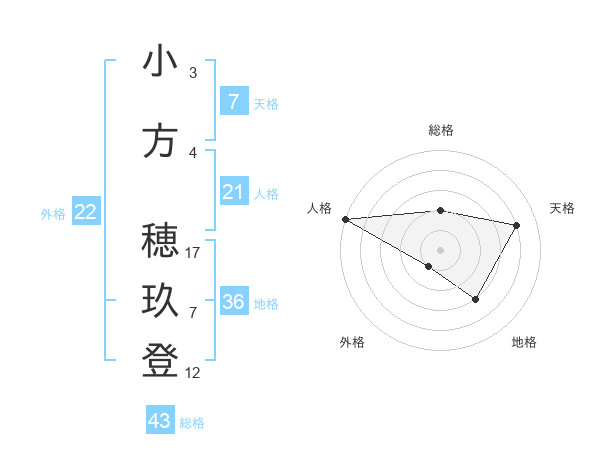 小方 穂玖登さんの天格は7画の4点