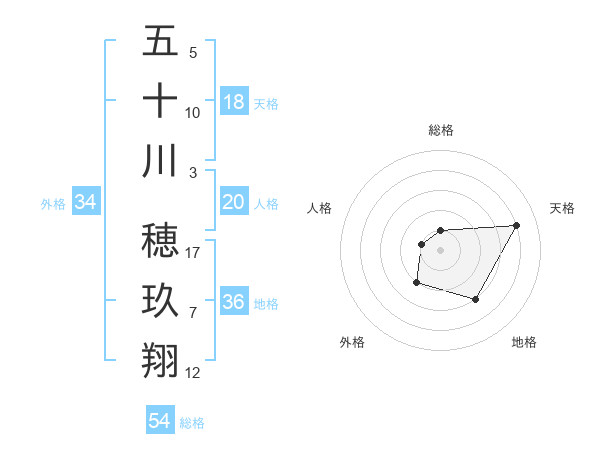 五十川 穂玖翔さんを姓名の画数から五運を鑑定