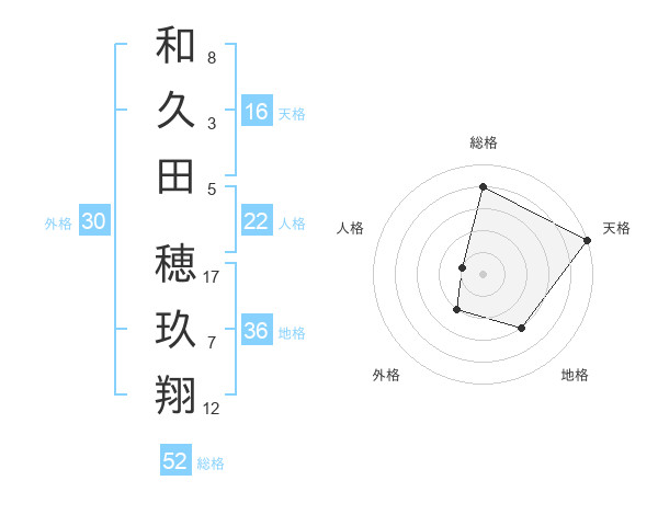 和久田 穂玖翔さんの天格は16画の5点!