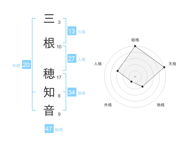 三根 穂知音さんを姓名の画数から五運を鑑定