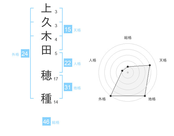 上久木田 穂種さんを姓名の画数から五運を鑑定