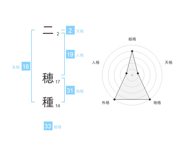 二 穂種さんの総格は33画の4点!