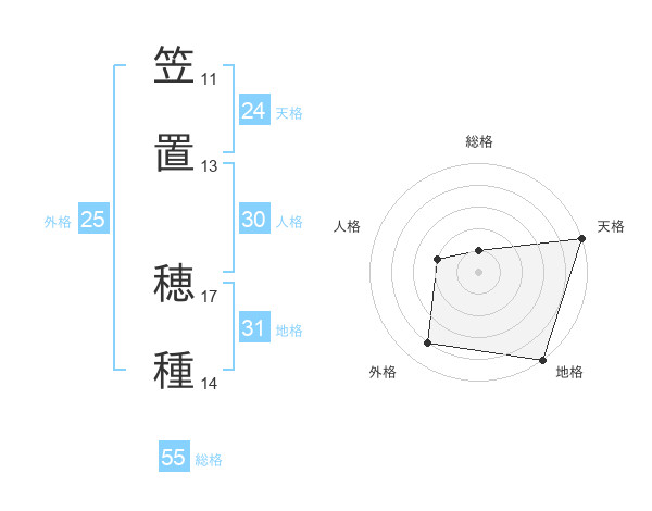 笠置 穂種さんの総格は55画の1点!
