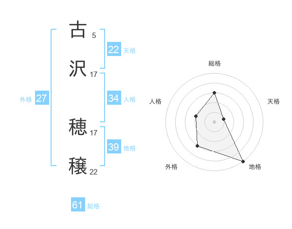 古沢 穂穣さんの総格は61画の3点!