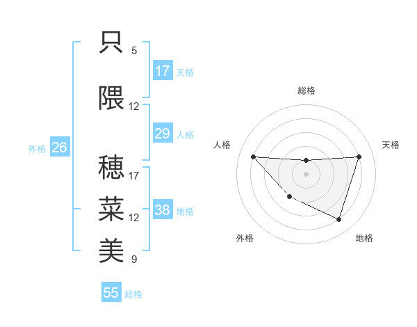 只隈 穂菜美さんを姓名の画数から五運を鑑定
