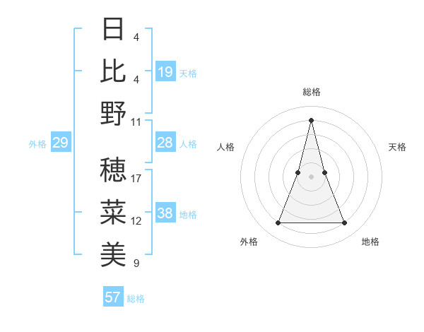日比野 穂菜美さんを姓名の画数から五運を鑑定