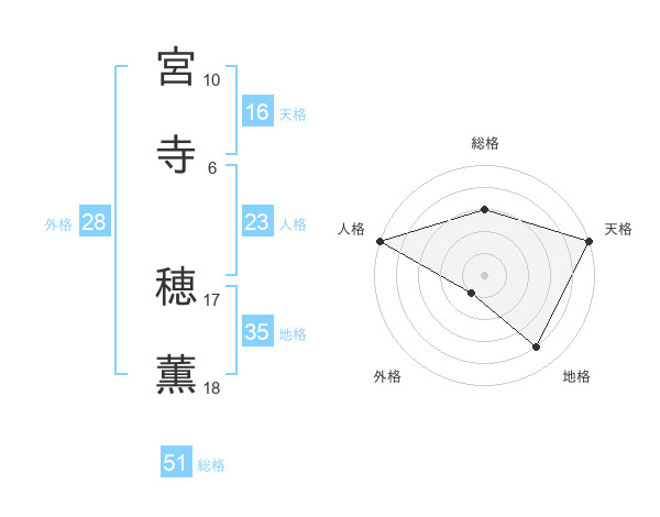 宮寺 穂薫さんの総格は51画の3点!