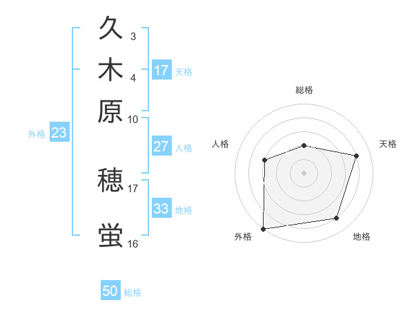 久木原 穂蛍さんを姓名の画数から五運を鑑定