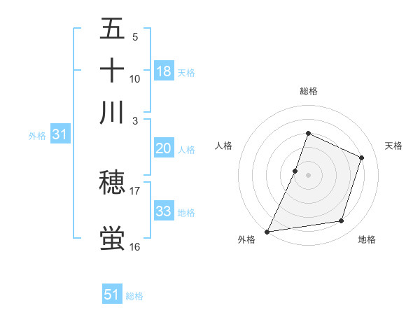 五十川 穂蛍さんを姓名の画数から五運を鑑定