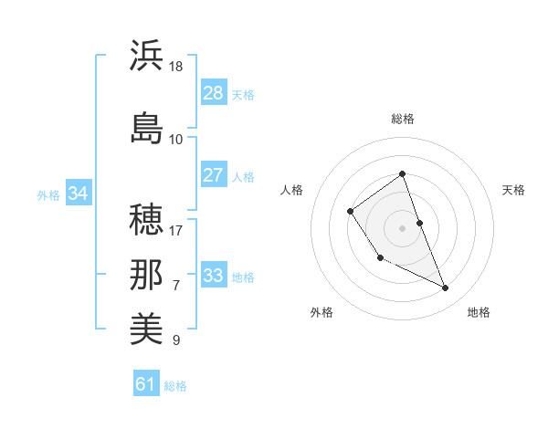 浜島 穂那美さんを姓名の画数から五運を鑑定