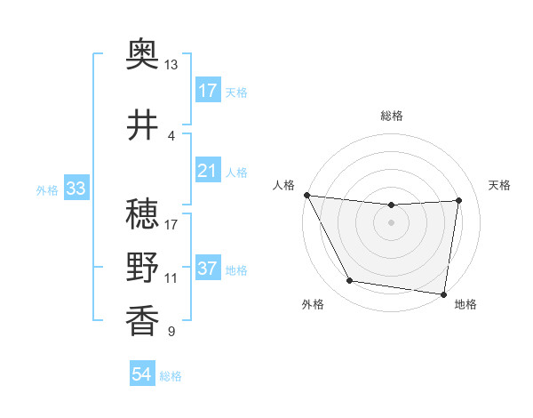 奥井 穂野香さんを姓名の画数から五運を鑑定