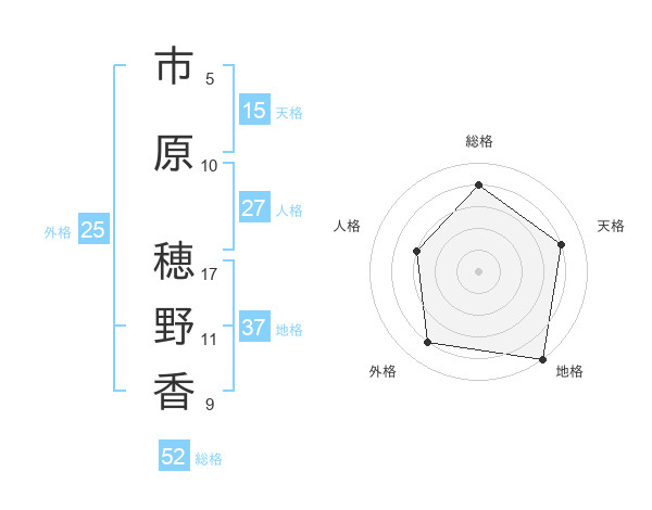 市原 穂野香さんを姓名の画数から五運を鑑定