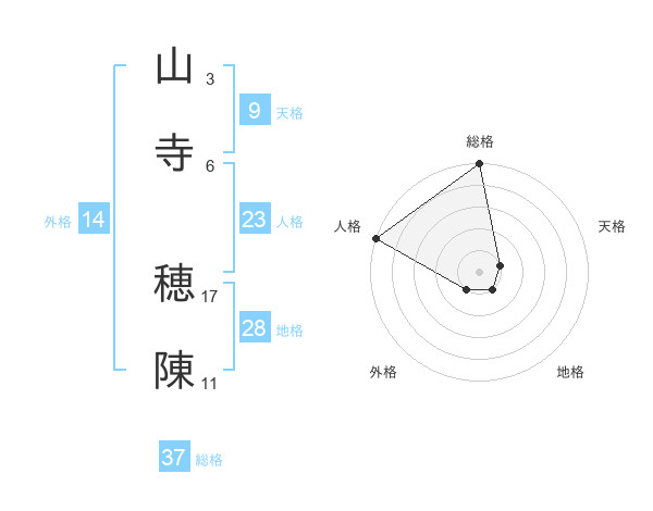 山寺 穂陳さんの総格は37画の5点!