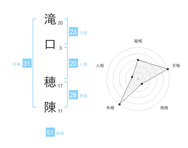 滝口 穂陳さんの総格は51画の3点!