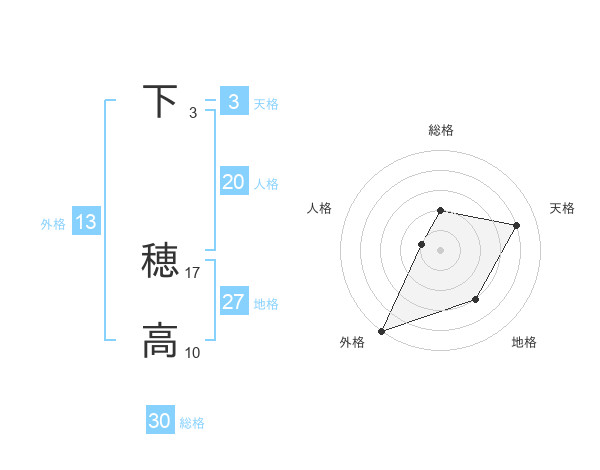 下 穂高さんの外格は13画の5点