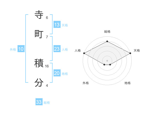 寺町 積分さんの地格は20画の1点!