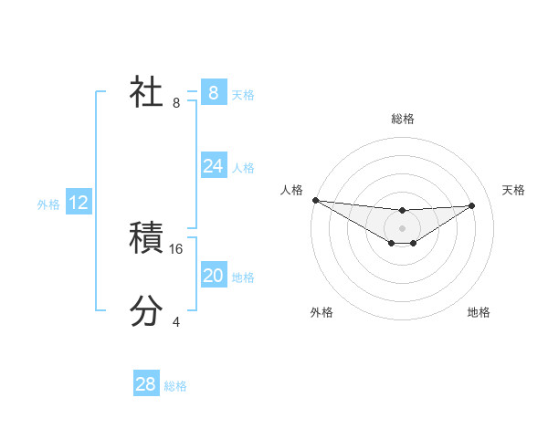社 積分さんの総格は28画の1点!