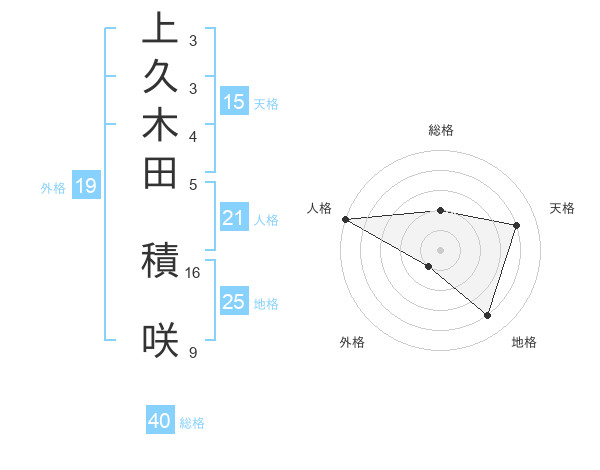 上久木田 積咲さんを姓名の画数から五運を鑑定