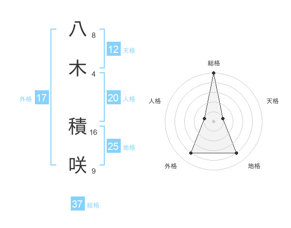 八木 積咲さんの総格は37画の5点!