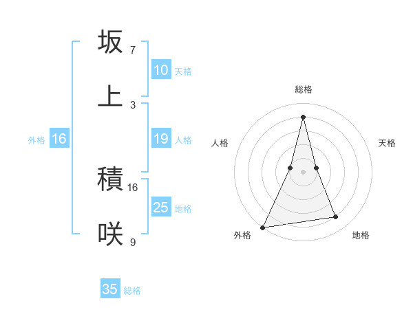 坂上 積咲さんを姓名の画数から五運を鑑定