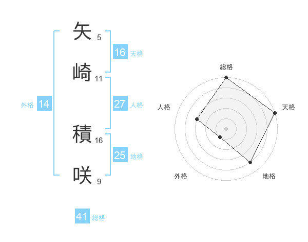 矢崎 積咲さんの総格は41画の5点!