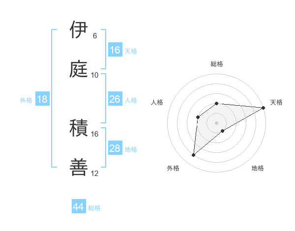 伊庭 積善さんの総格は44画の2点!