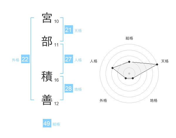 宮部 積善さんの天格は21画の5点!