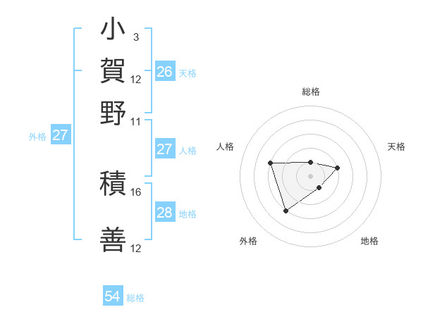 小賀野 積善さんを姓名の画数から五運を鑑定