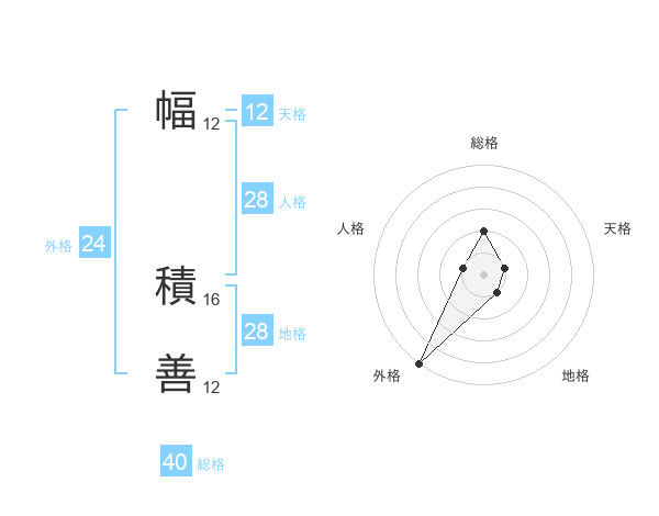 幅 積善さんの外格は24画の5点!