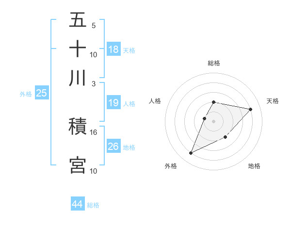 五十川 積宮さんを姓名の画数から五運を鑑定