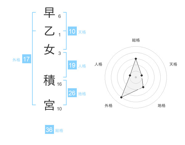 早乙女 積宮さんを姓名の画数から五運を鑑定