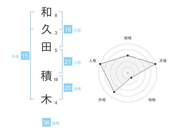 和久田 積木さんの天格は16画の5点!